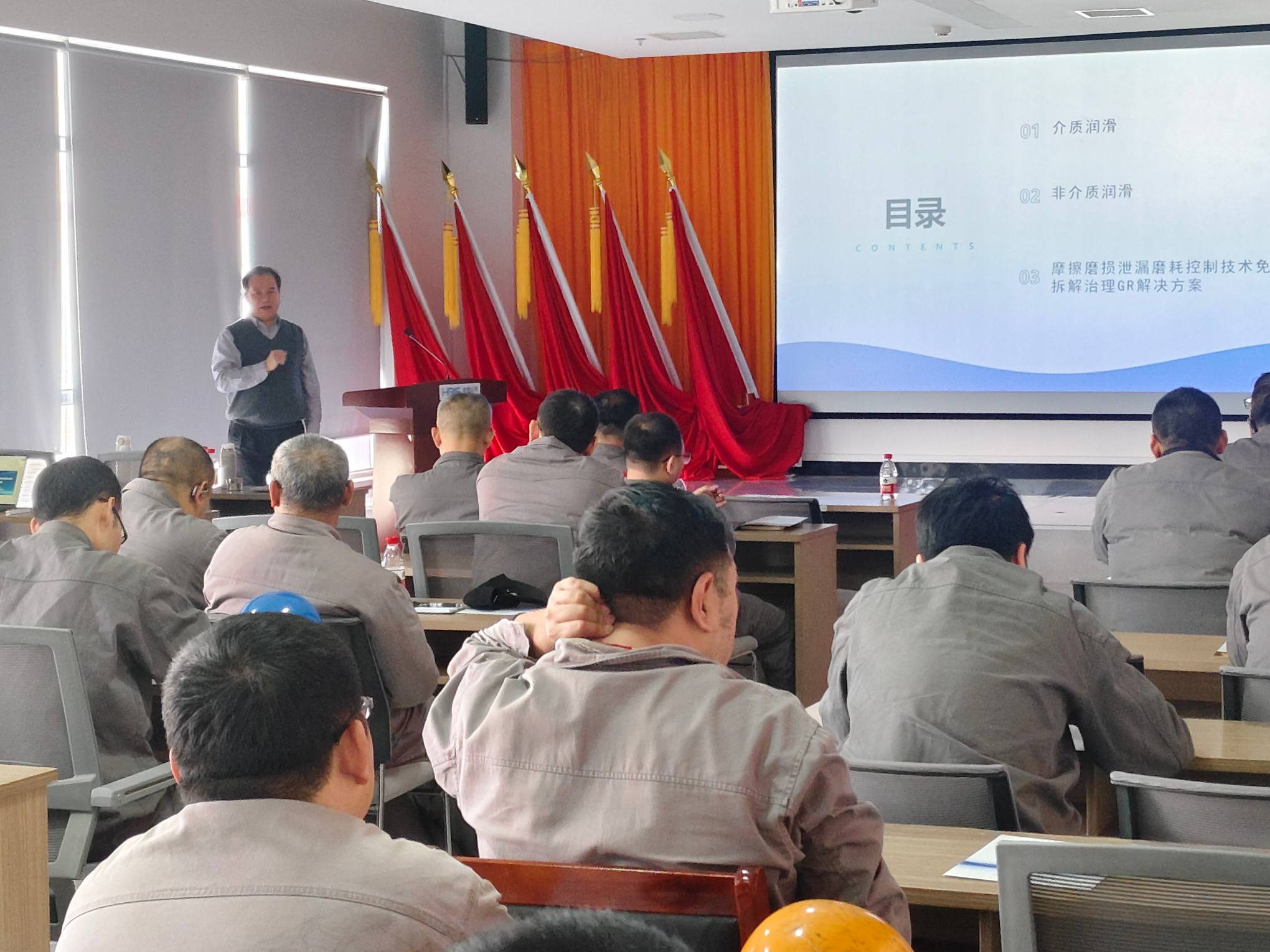 交流会上,张老师发表主题演讲,深入剖析钢铁生产中传动机械摩擦磨损与泄漏磨耗的行业痛点,并重磅分享了公司潜心研发的GR复合固体润滑工程技术。该技术通过创新的潜伏式复合固体润滑设计与高性能GR复合润滑工程技术,实现了磨损与泄漏的同步协同控制,在提升设备可靠性、延长使用寿命、降低能耗方面表现突出。张老师结合公司现有技术成果,详细介绍了介质润滑涉及的复合固体润滑剂的长效性、自密封性、防水性和减小磨损,非介质润滑涉及的免维护自润滑材料及其应用,摩擦磨损泄漏控制技术免拆解治理GR解决方案。展现的显著技术优势获得现场 专 家 与河钢唐钢技术团队的高度认可。